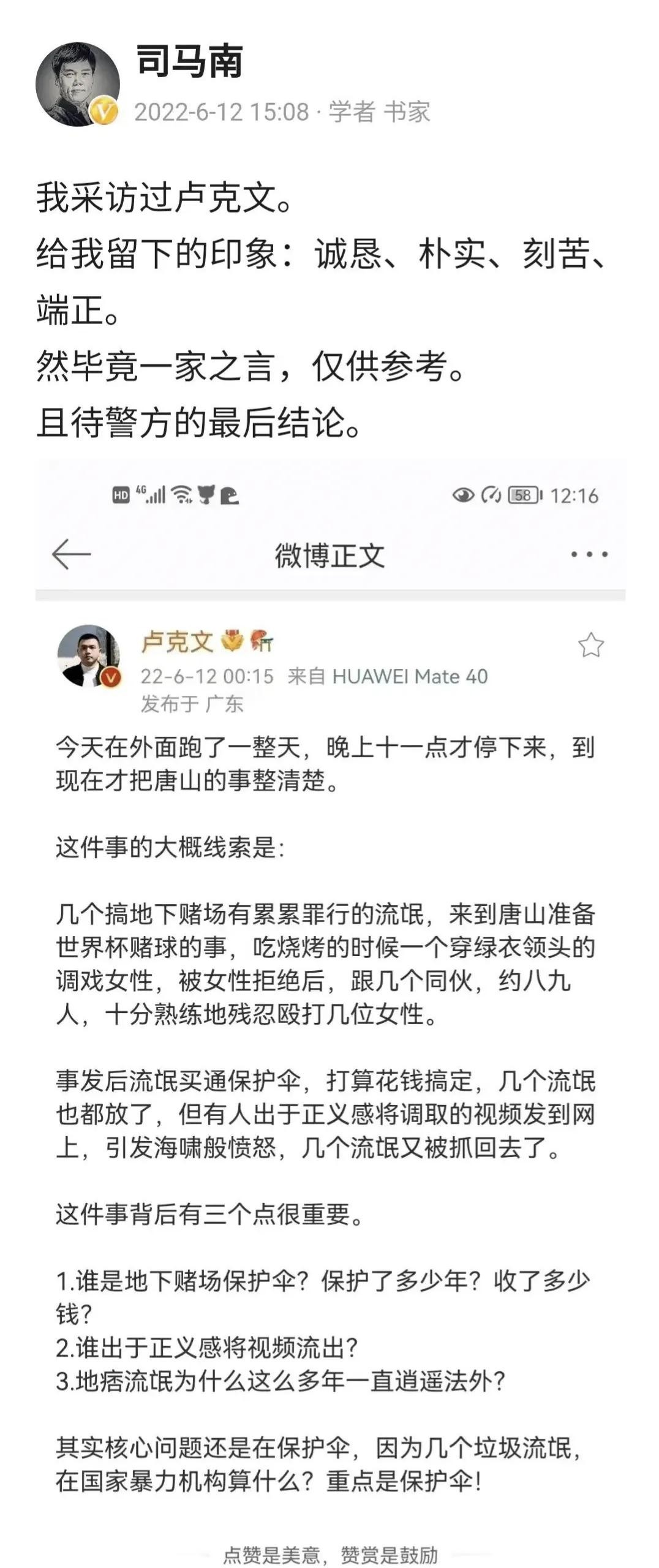 直到网上出现一署名陆克文的帖子。知名大V司马南转发特意加持点评。