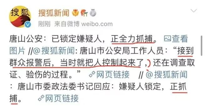 而到了下午唐山市政法委书记说:嫌疑人已锁定,正在全力抓捕。