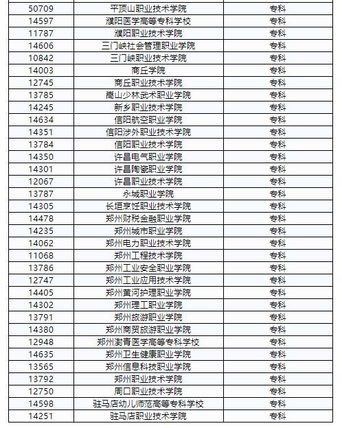2020年河南省对口招收中等职业学校毕业生进入普通高校学习