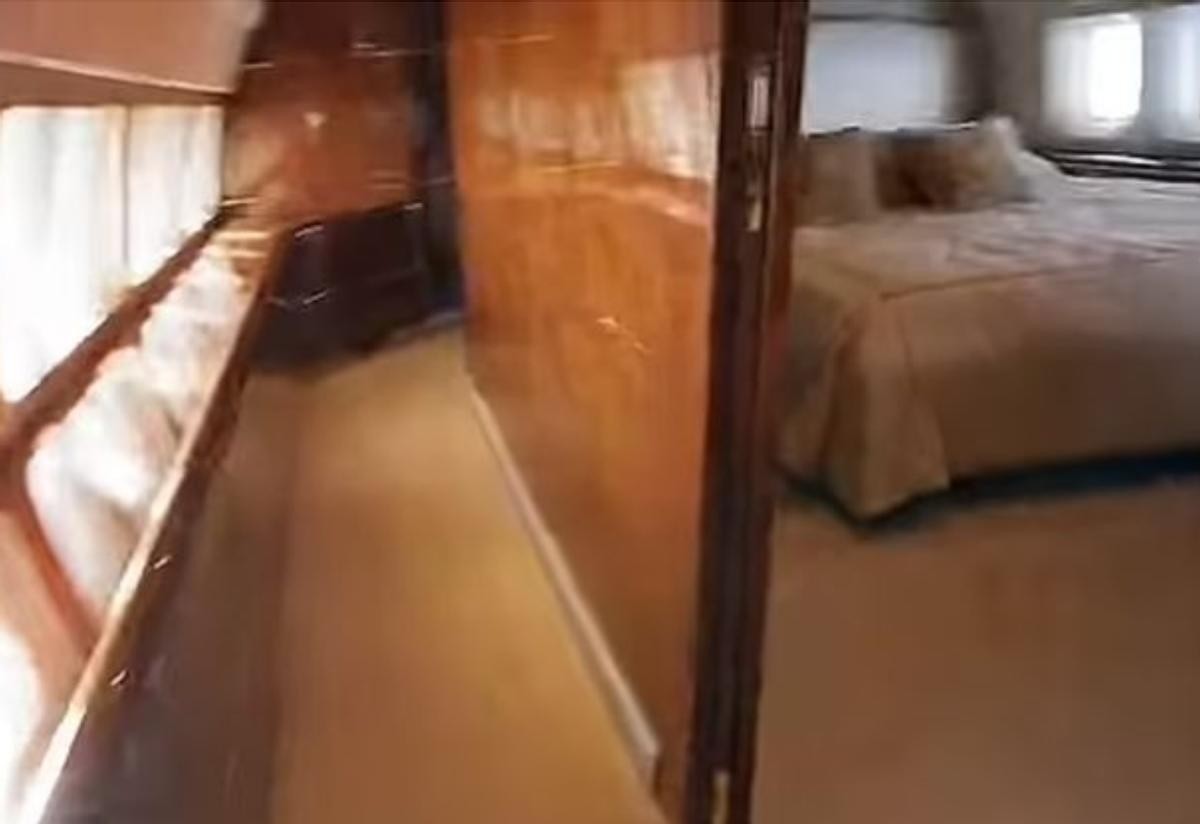 随着凯德镜头的移动,我们看见了飞机里面更多的场景,从放着平板电视的小客厅出去以后,旁边就是一个放着双人床的那房间。