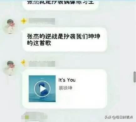 除了发色,蔡徐坤的粉丝还说张杰的成名曲《逆战》是抄袭蔡徐坤的!这个消息一出不仅张杰的粉丝感到愤怒,就连大部分网友都觉得好笑,众所周知,张杰凭借这首歌大火的时候,蔡徐坤不知道还在哪里“打酱油”呢!这波操作真的是不明所以,这群小学生为了追星真的是不计言语后果,什么话都敢说,真的是一点点败坏蔡徐坤的好感!不过网友们却表示理解,ikun们确实没救了,给张杰安排了个“跨时空抄袭”也是没谁了!对于这样的粉丝,以后大家直接无视就好!