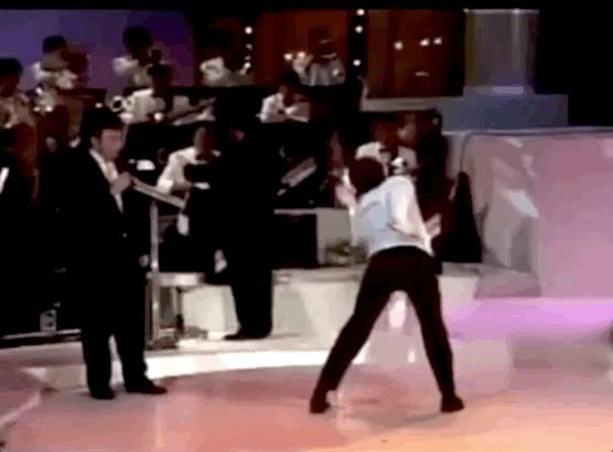 那个时代许多台湾歌手都是在演艺酒吧和秀场被星探发掘,跳舞是拿手绝活,为了模仿的惟妙惟肖,小哥跳起舞来也是拼的很。其中扭胯的动作是一大奇观,大家感受下这个扭动幅度。