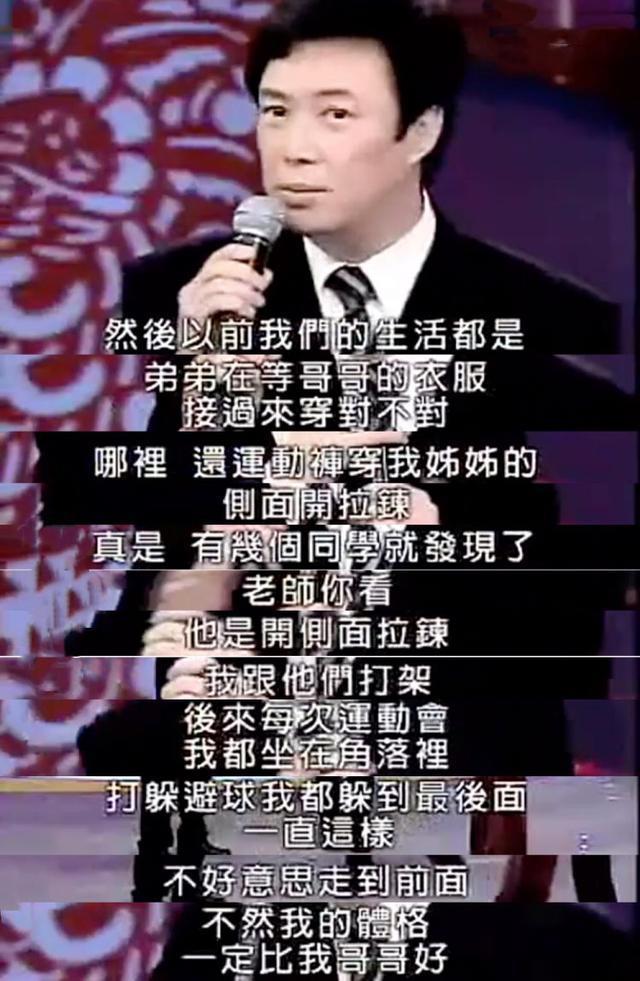 有哥哥姐姐的他小时候要等他们的旧衣服穿,甚至要和姐姐共穿运动裤,一度被同学嘲笑。虽然有戏谑的成分,但也是“亲历者”才有的自黑和幽默。