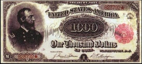 1891年发行的美国红印章纸钞(收藏价值为250万美元,人民币约1500万元)