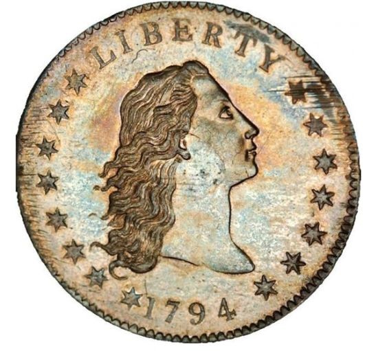 1794-1795年发行的飘逸长发币(收藏价值为1000万美元,人民币约6000万元)