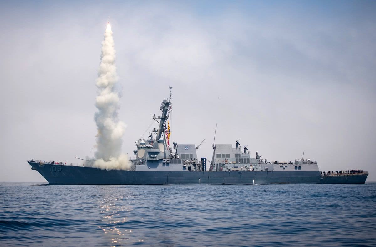 伯克级驱逐舰发射战斧式巡航导弹