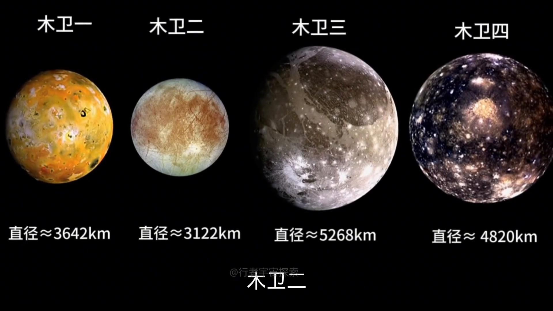1610年,伽利略用自制望远镜发现了木星周围的四颗卫星,它们被命名为伽利略卫星,分别是木卫一、木卫二、木卫三和木卫四。这几颗卫星占据了木星卫星总质量的99.999%。作为伽利略卫星中最遥远的一颗,木卫四与木星的平均距离达188万公里,是木卫一的4.5倍。
