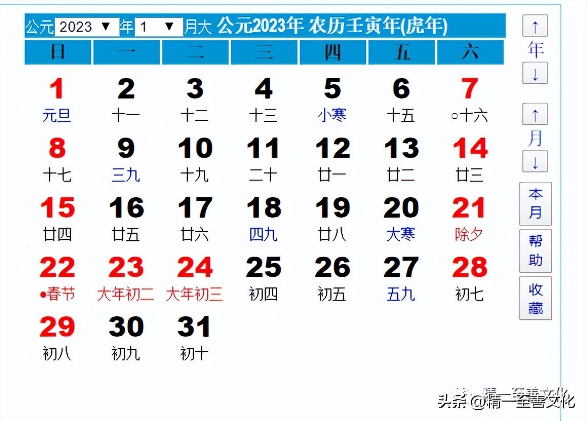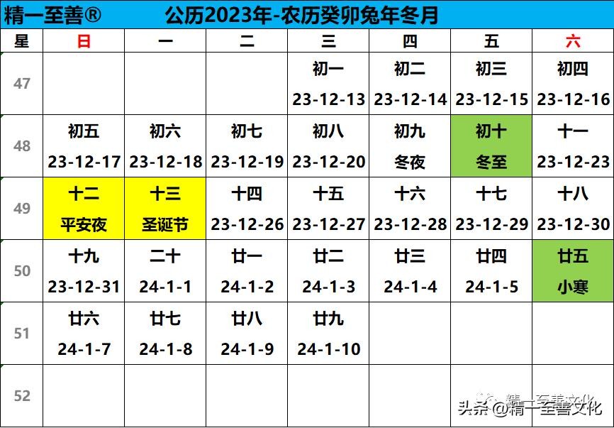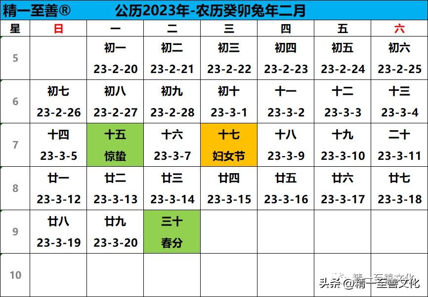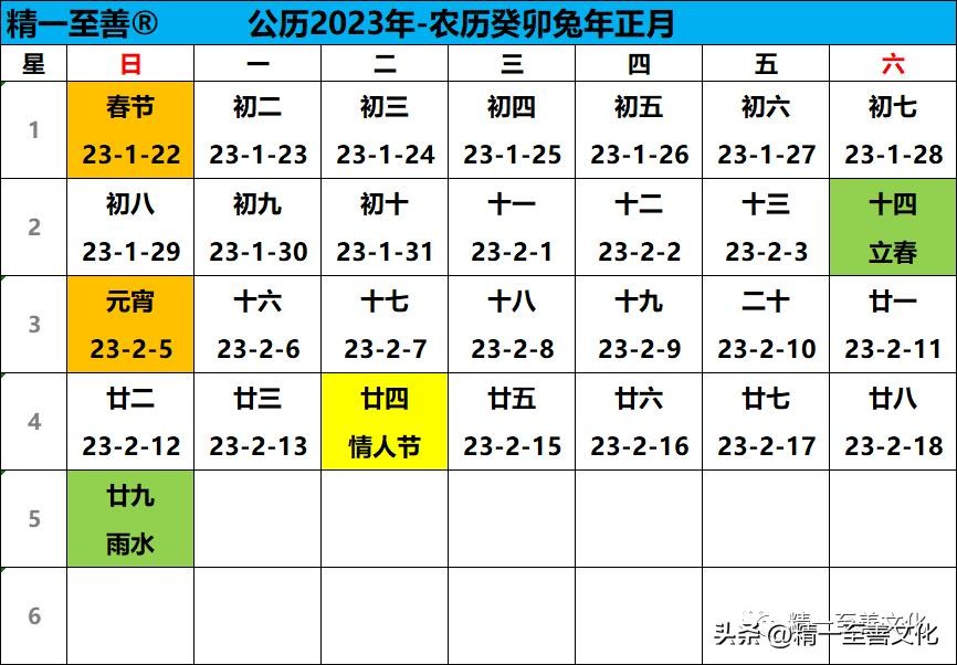 2023年-农历日历:看中国日历,过中国年[5列6行排序]