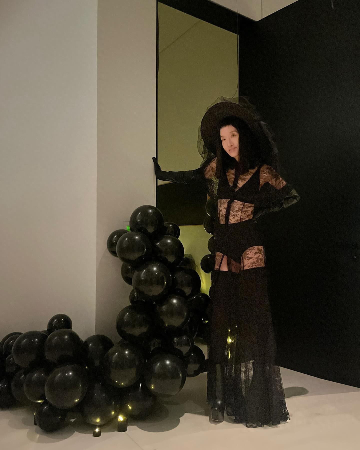 74岁王薇薇万圣节又胸衣外穿!薄纱蕾丝真性感,混血女儿身材输了