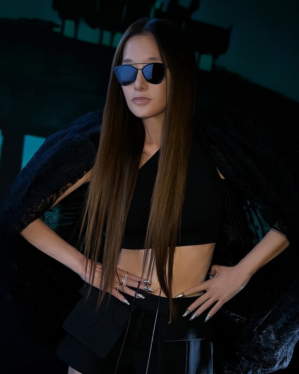 王薇薇这身黑色天使的造型,也是充满着神秘感,露腰上衣配上短裤,钻石美甲也是非常精致。