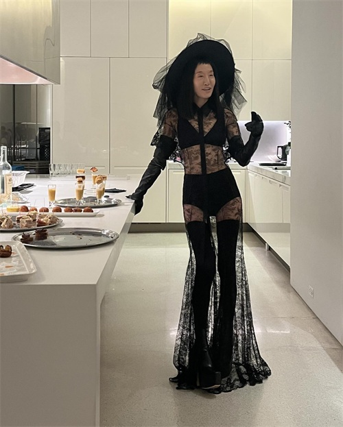 其实王薇薇的造型一向都很放得开,而这次万圣节,她的主要风格是暗黑系,选择了一身黑色系的造型。