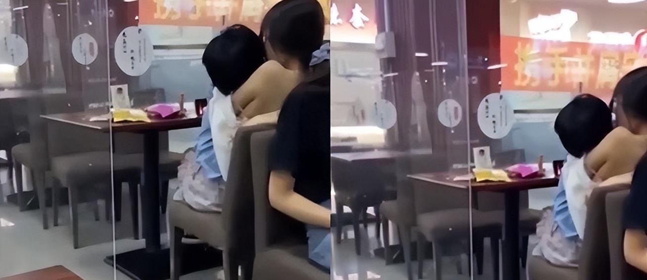 然而,更令人震惊的是,这对情侣在吃完几口饭后开始接吻,旁边的人不禁目瞪口呆,显然他们并不顾及其他人的存在。有些学生开始拿出手机拍摄视频,但意想不到的是,这一幕成为了限制级别的画面:女孩掀起上衣,男孩趁机埋头在女孩胸口。这一瞬间,让一些正在用餐的孩子感到非常不舒服。