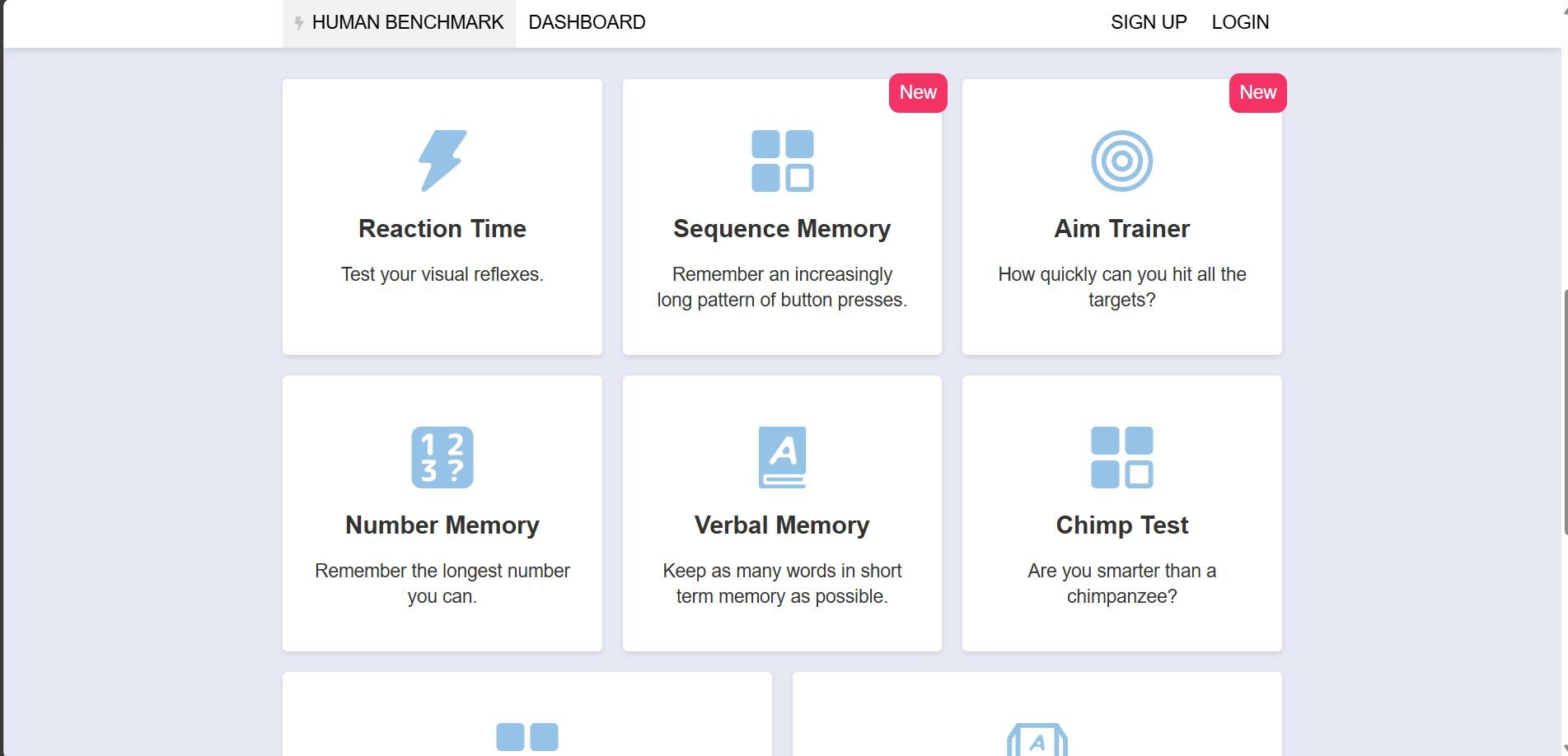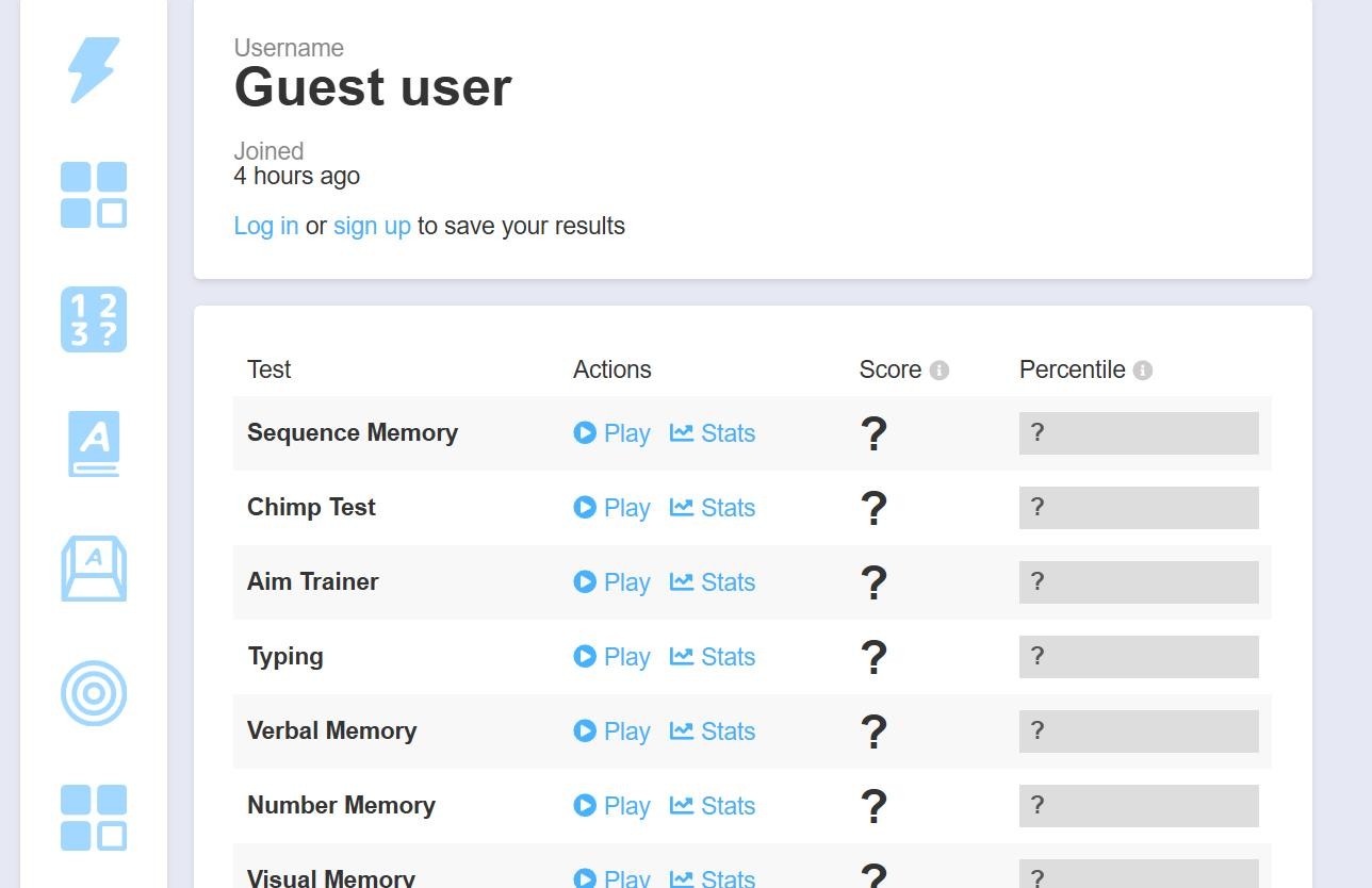 这个网站可以测试你的反应力、记忆力等等,其中包含了许多测试小游戏,比如测试视觉能力的、测试手眼协调的反应速度的、测试数字记忆能力的等等......