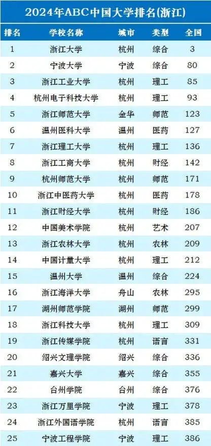 以上就是浙江省排名靠前的几所大学,你是否认可这样的排名呢?