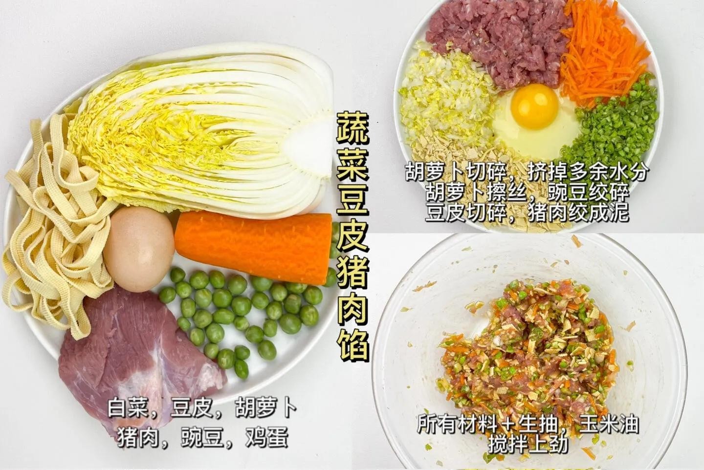 1、蔬菜豆皮猪肉馅