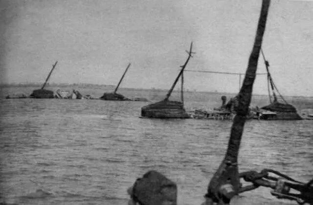 大量舰艇在长江口自沉,希望以此阻止日军舰队沿江而上,威胁南京
