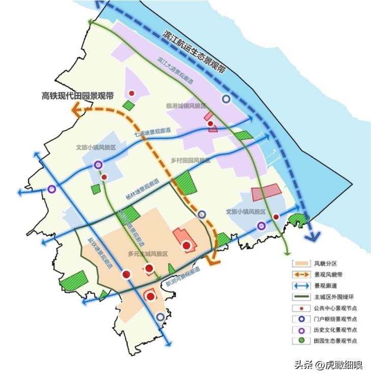 四区:多元主城风貌区、 文旅小镇风貌区、临港城镇风貌区、 乡村田园风貌区。