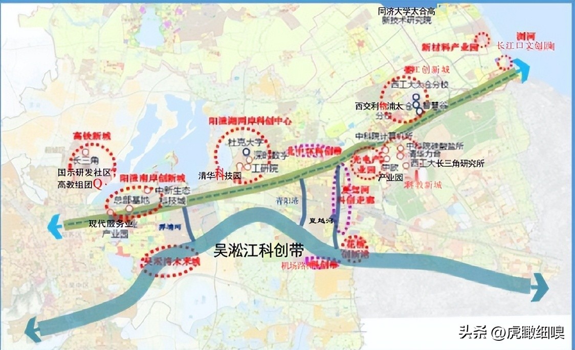 推动科创要素协同:依托娄江-太仓塘-新浏河, 串联太仓、 昆山、工业园区、 相城区, 呼应虹桥国际开放枢纽北向拓展带建设, 重点加强娄江沿线科创与产业协同, 加快融入全市科创格局。