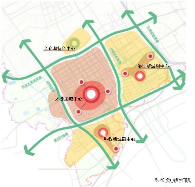 “两副一特": 指东部娄江新城副中心、 南部科教新城副中心和金仓湖特色中心。