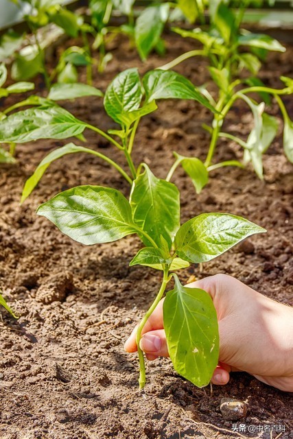 移栽的时候,要小心地把辣椒苗从育苗容器里取出来,尽量不要伤到根系。就像把小朋友从一个小房间搬到另一个大房间,要轻手轻脚的。把辣椒苗放进种植穴里,扶正,然后填土,把根系埋住,稍微压实。移栽完后,要浇透水,这叫“定根水”,就像给辣椒苗喝了一杯“安心水”,让它能尽快适应新环境。