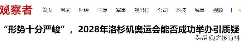 观察者网:“形势十分严峻”,2028年洛杉矶奥运会能否成功举办引质疑 2025-01-14