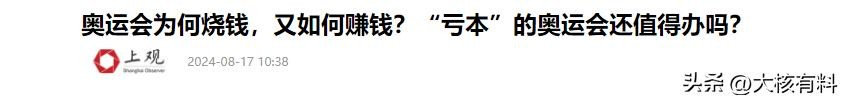 上观新闻:奥运会为何烧钱,又如何赚钱?“亏本”的奥运会还值得办吗? 2024-08-17