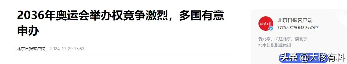 北京日报客户端:2036年奥运会举办权竞争激烈,多国有意申办 2024-11-29