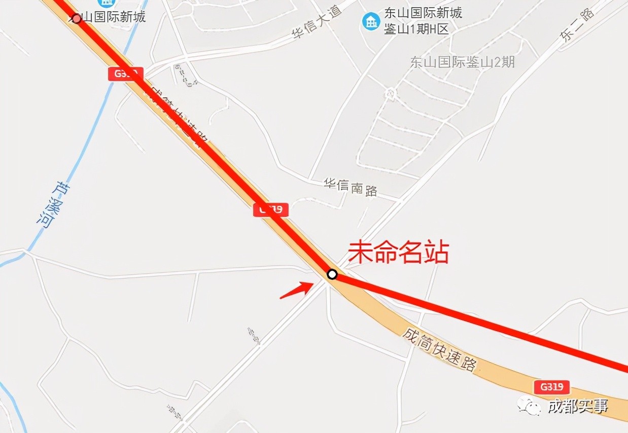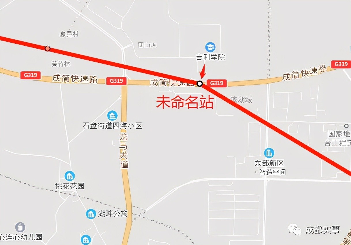 第三站:位于成简快速路与东二路交汇处,东山国际新城西南侧附近,与地铁2号线东延线在此站换乘。