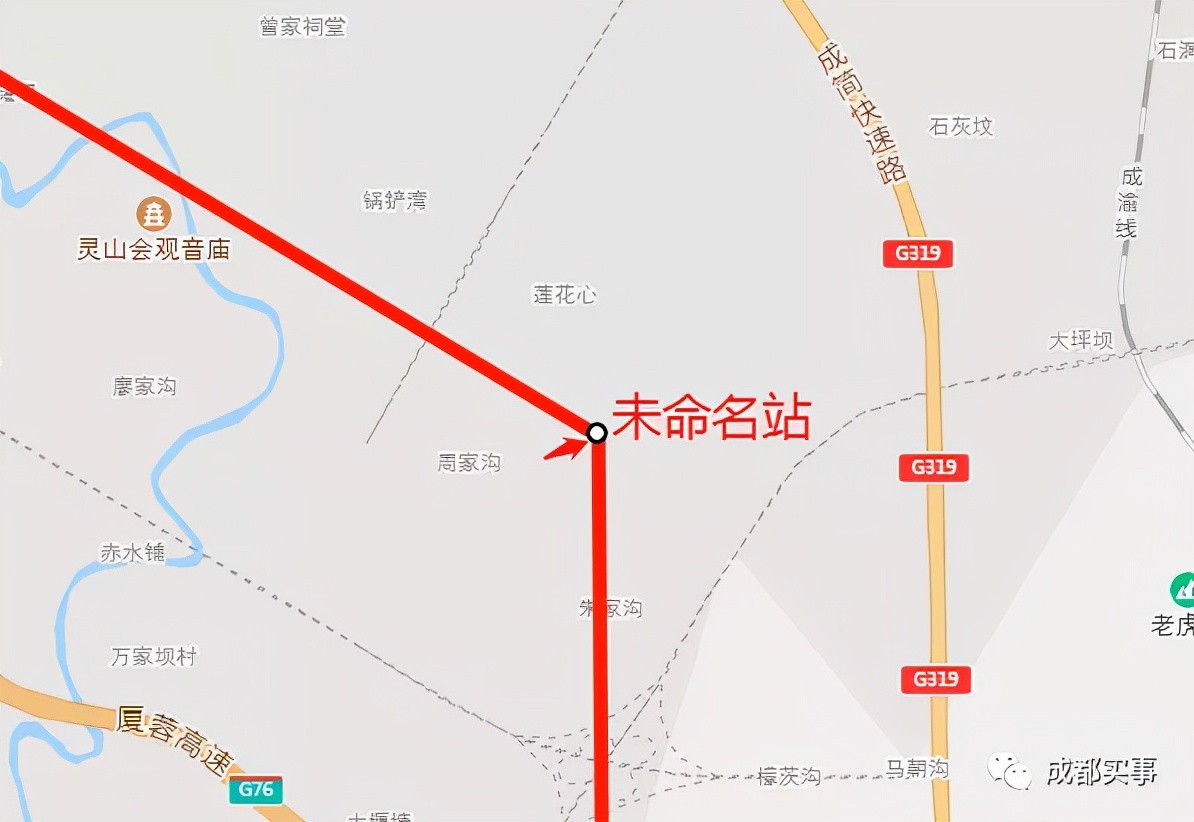 第六站:位于成简快速路与厦蓉高速之间,简阳市莲花心村南侧附近,与S2线、D1线在此站换乘。本站为三线换乘站。