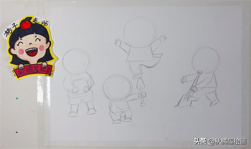 第一步,先用铅笔起稿,在画纸上先确定主要人物位置,只需画出大概的形体轮廓,不需要详细画出人物细节。