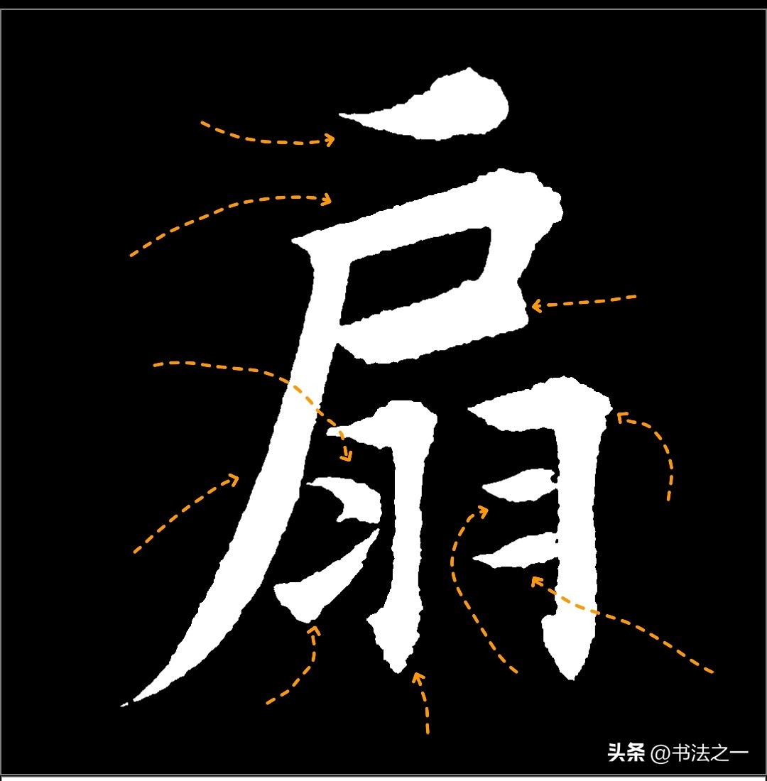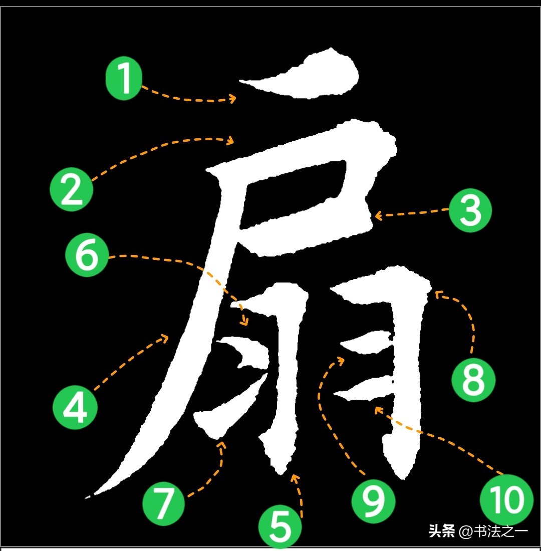 我们今天来讲一下“扇”字。这个字是半包围结构的字,因此写好这个字可以解决半包围结构类字的技法问题。
