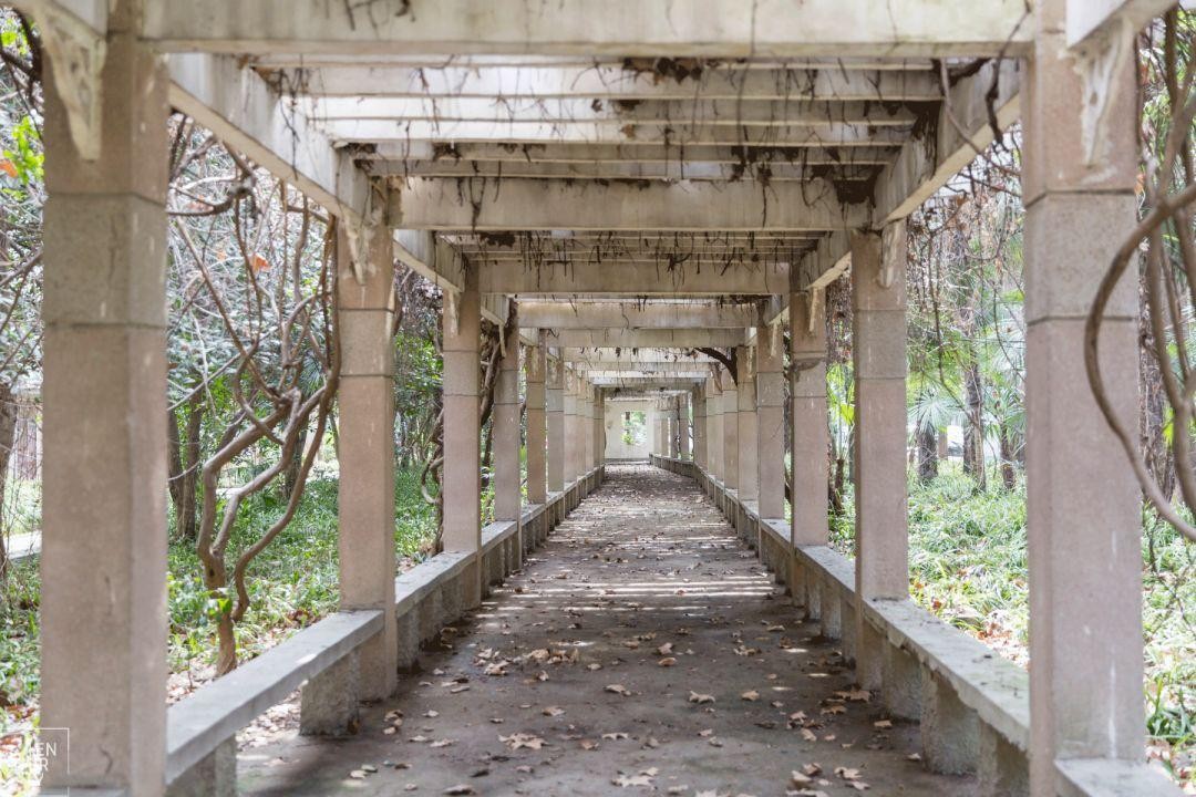 从正门进到思睿广场,曾经稍有气派的综合楼如今也因为某种原因谢了顶,楼上原先的“湖北大学”四字招牌拆的只剩下光秃秃的立架。