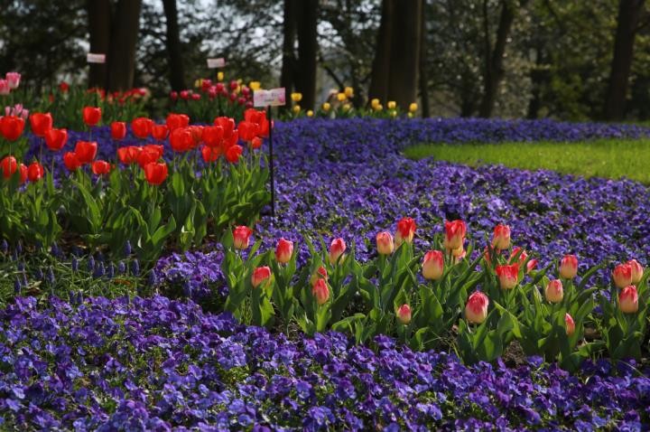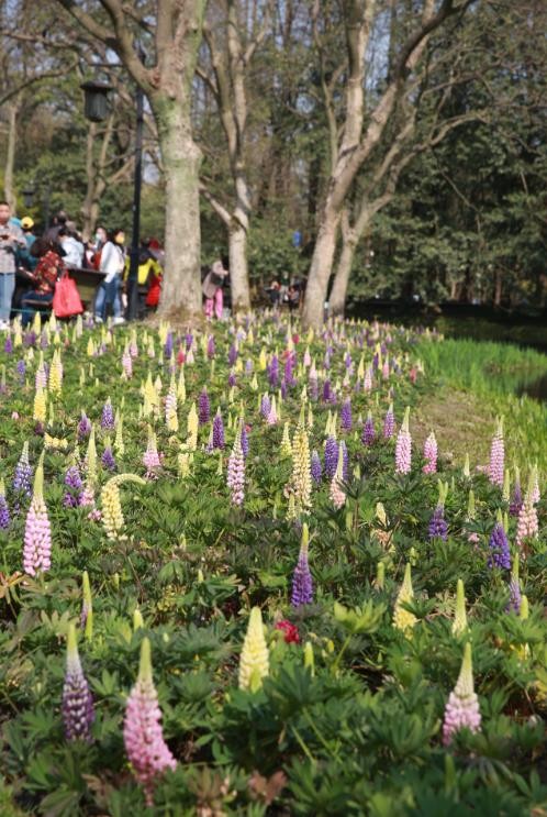 除了郁金香,今年还种植了羽扇豆、虞美人、角堇、鸢尾等花卉,点缀在公园的角角落落,让你不经意间就遇见不一样的春华。