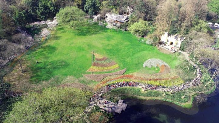 郁金香的种植区域,主要在望山坪、逍遥坡、手拉手雕像、悠然亭、主河道两侧及玫瑰园等区域。最推荐大家去看看逍遥坡的“长风破浪,未来可期”,非常值得一赏。