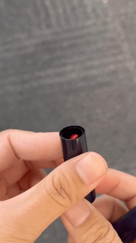 口红旋转出来,同样是花瓣型膏体,可以完整贴合包覆唇部,一笔成型,立马勾勒出上下唇线。