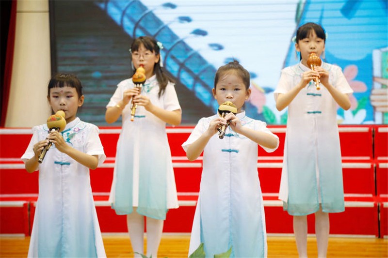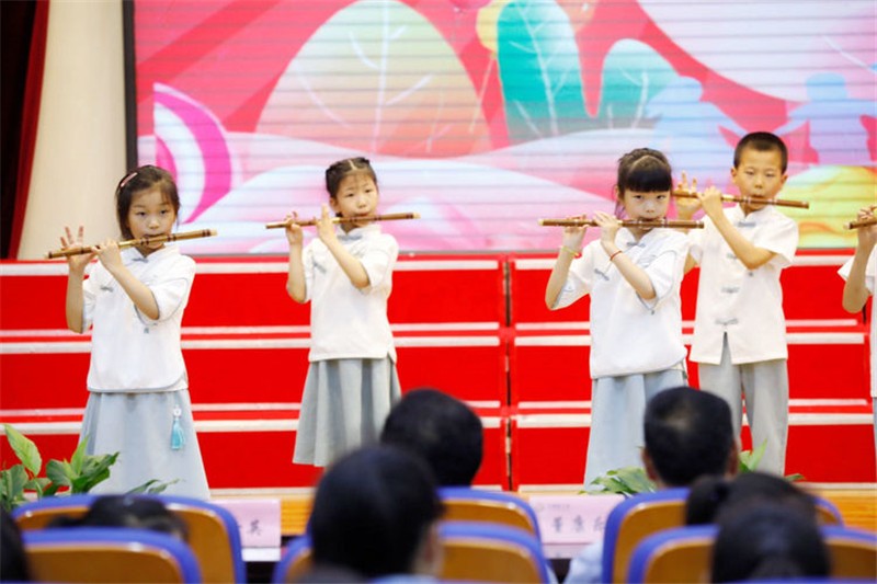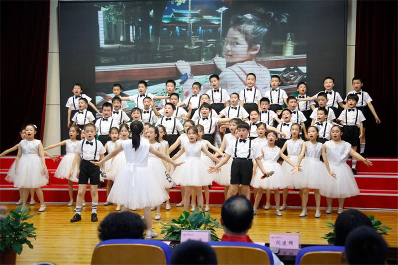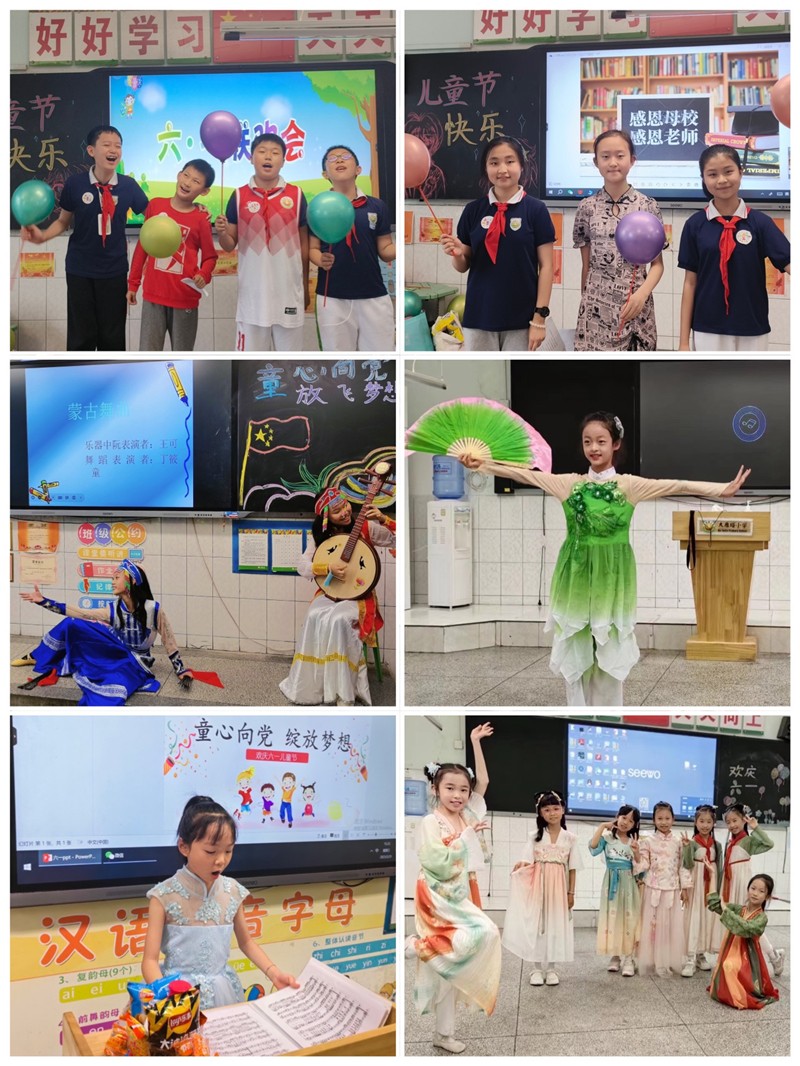 孩子们穿着盛装,载歌载舞,放声歌唱,深情朗诵。