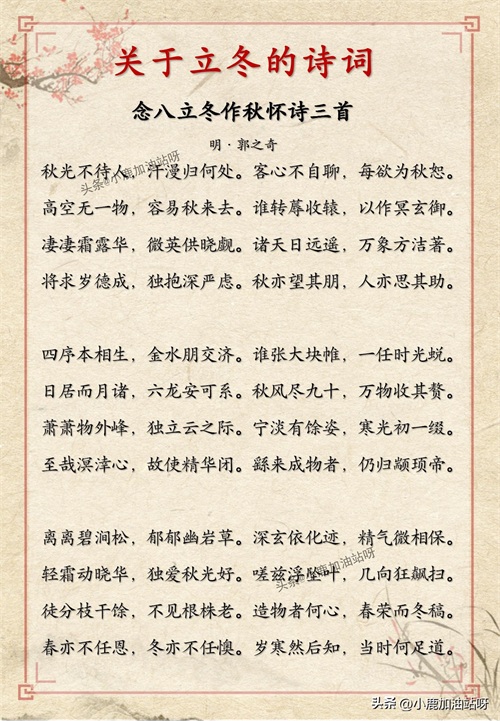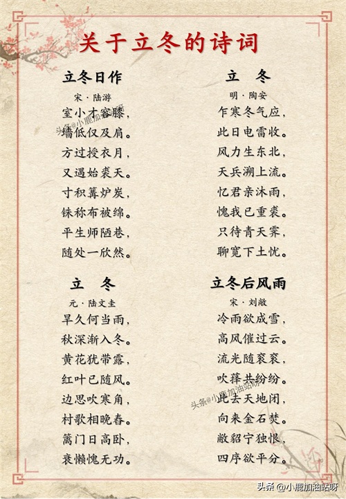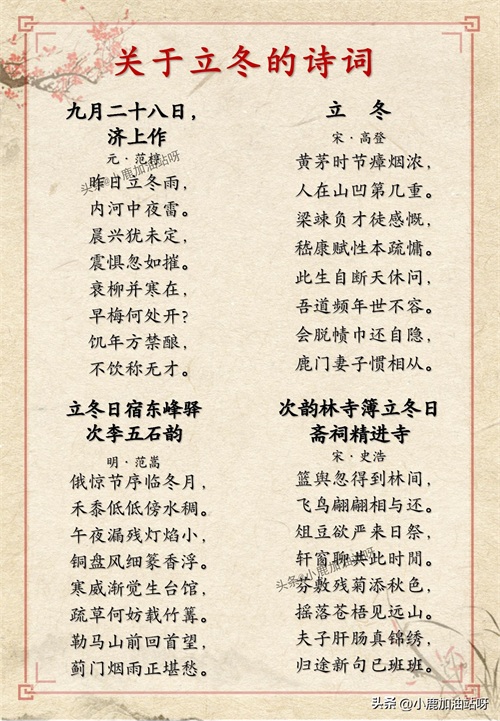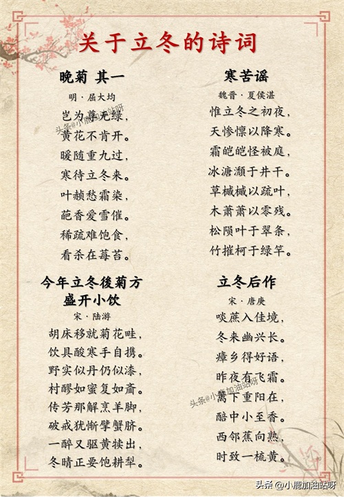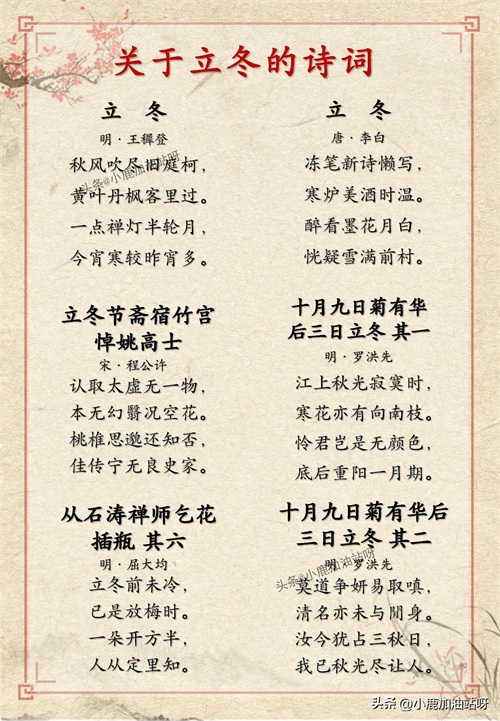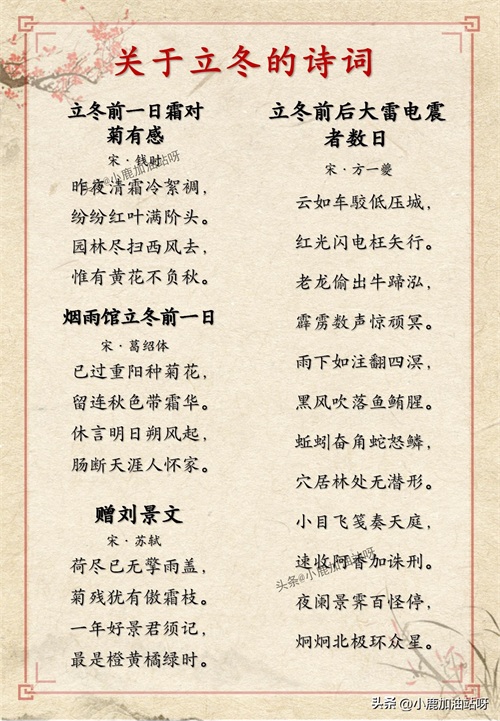 80首关于立冬的古诗词汇总:一年好景君须记,最是橙黄橘绿时