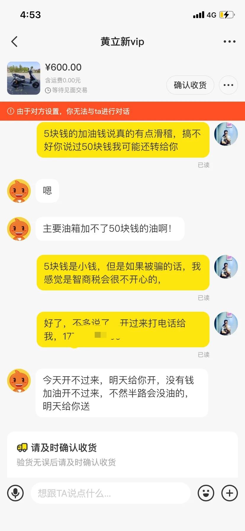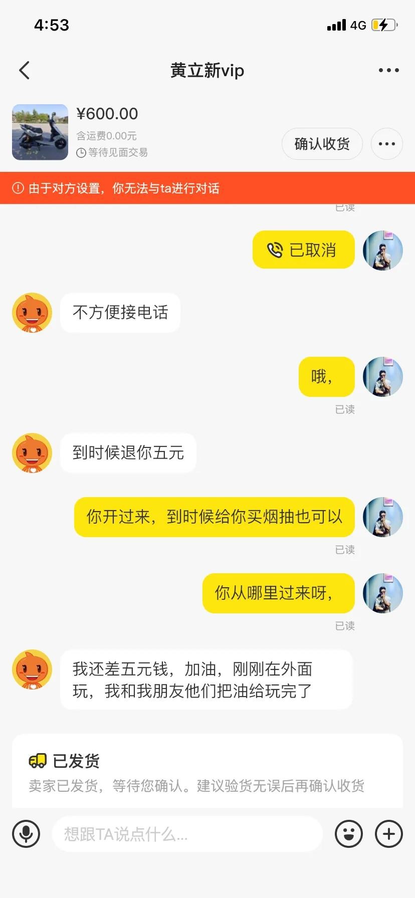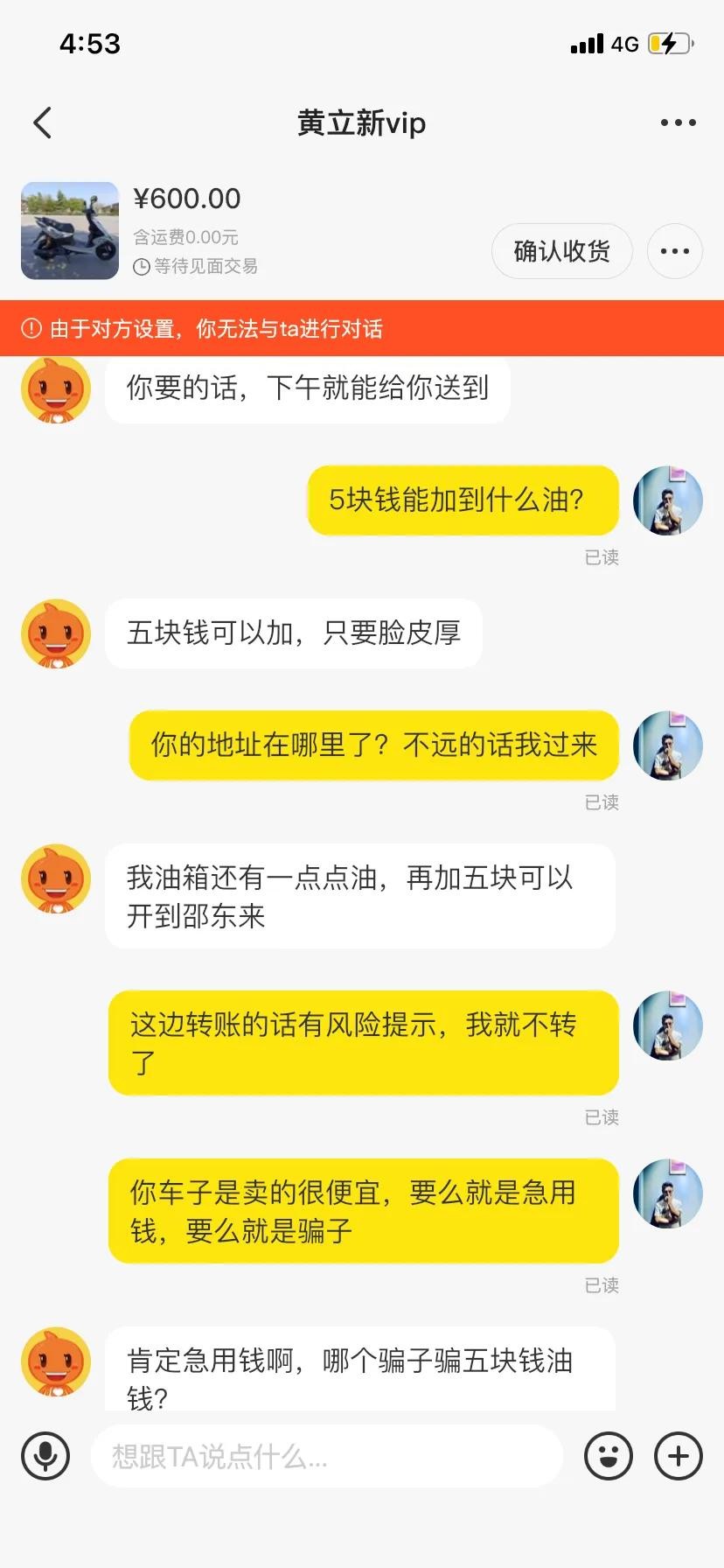 说完之后他已经把我拉黑了。显而易见,这个人是个骗子,他为了几块钱,在这个二手交易平台不断的发这个低价的二手商品骗取小额的邮费好处费之类。