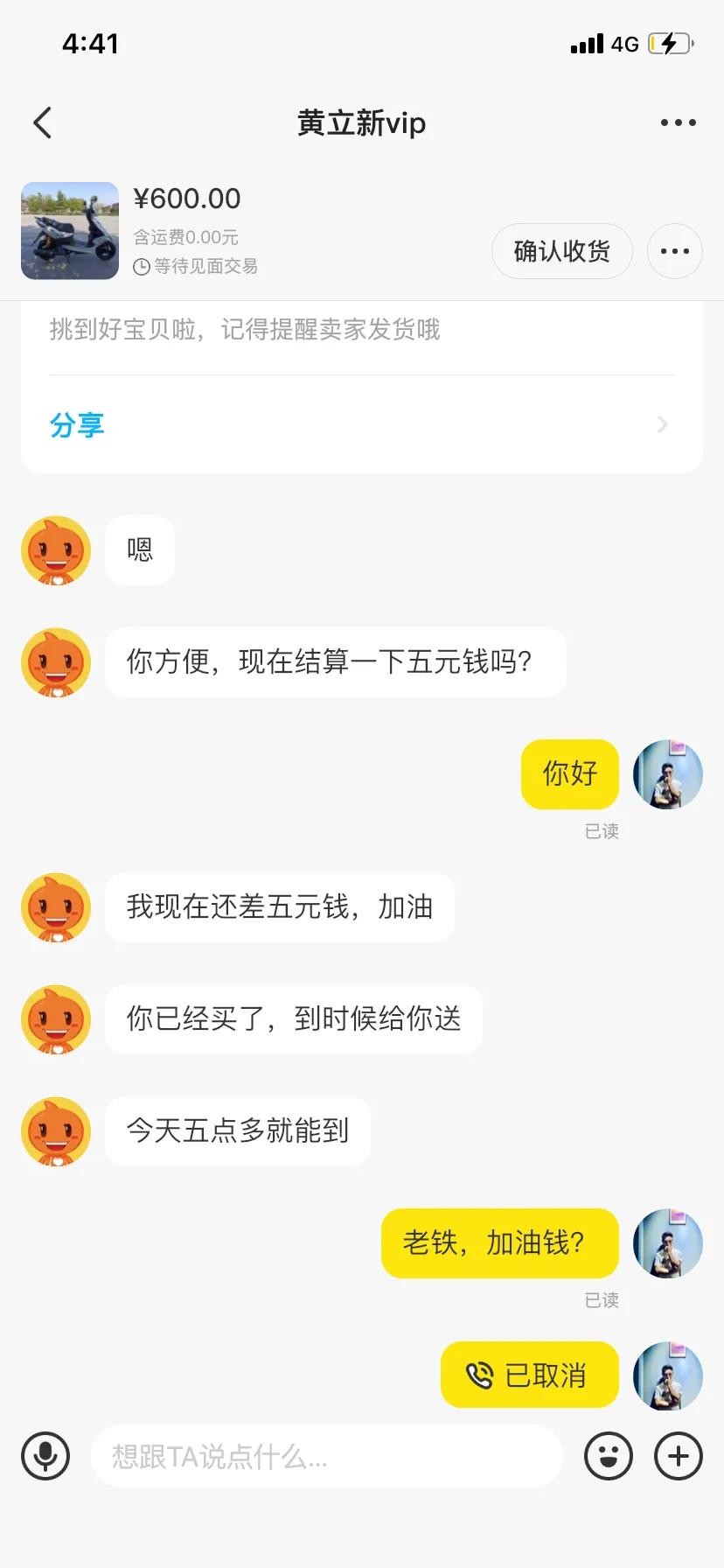 直截了当的让你转钱。当然要的也不多,5块钱,一般的话五六百块钱的商品他要求转个5~10块钱,一般人都会答应。