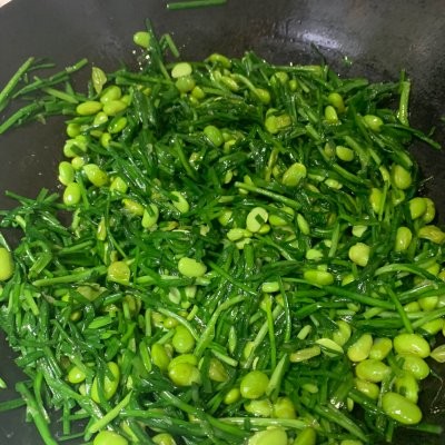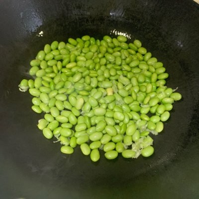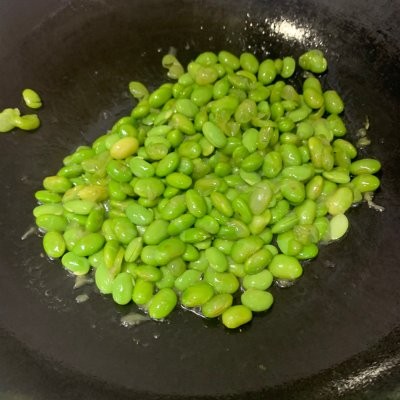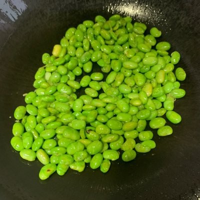 3、毛豆米翻炒一分钟左右,炒至断生变色