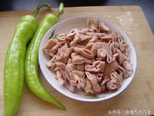 原料:猪大肠、青椒、葱、姜、蒜、油、盐、花椒、八角、酱油、料酒、水淀粉