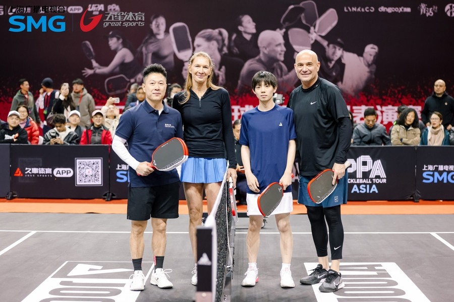 沈先生带着全家来看比赛,“阿加西和格拉芙站在我面前,恍然回到了我的大学时代。”20多年前,网球国际赛事刚刚开始在上海起步,之后赛事不断升级,顶级球员前来参赛,网球文化在上海传播开来。因为喜欢阿加西,网球成为了沈先生大学时代最爱的运动。而现在,新兴项目匹克球在上海也正呈现快速发展态势,成为了沈先生一家的新欢。每到周末,他就会和妻子孩子一起打匹克球,他指着场上的阿加西夫妇说:“喏,他们就是最好的代言人。这项运动不分年龄和性别,很好上手,是一项适合全家一起玩的运动。”