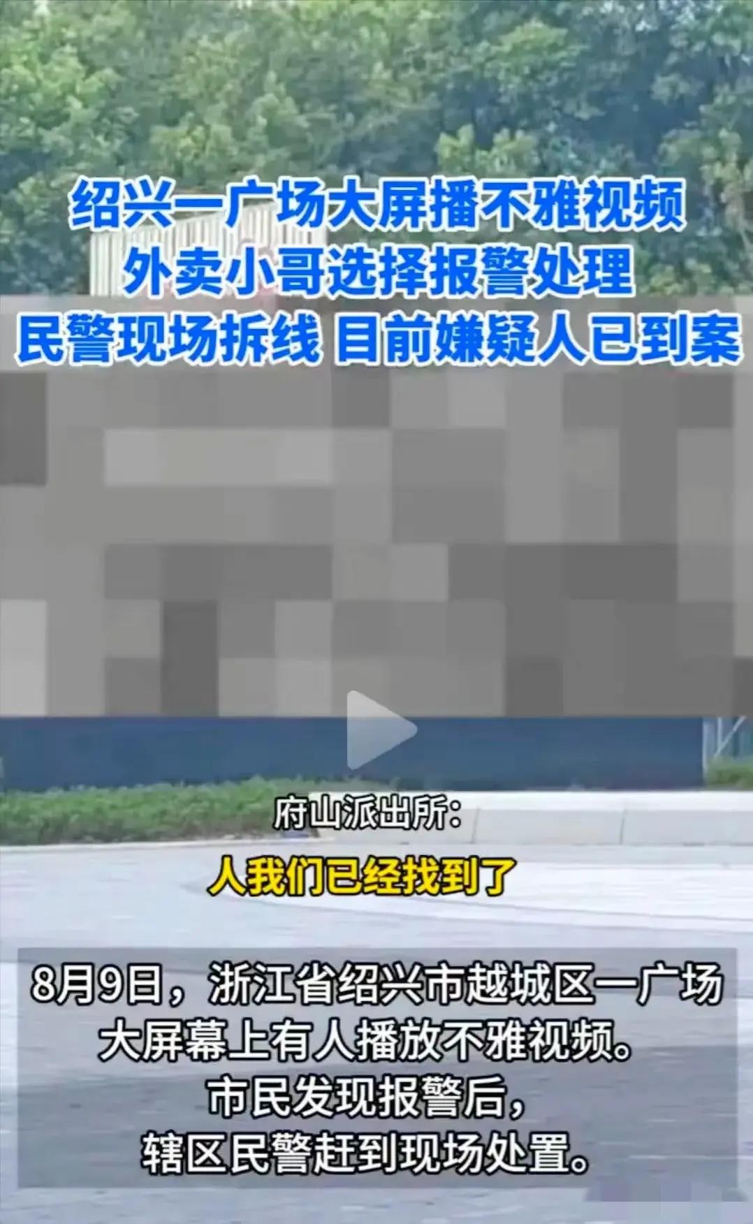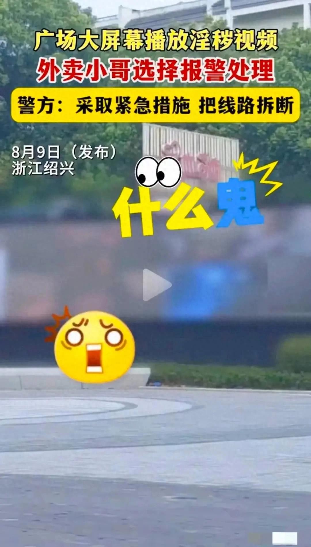 近日,浙江绍兴一广场大屏幕突然播放不雅视频,外卖小哥报警后,警方紧急切断电源。