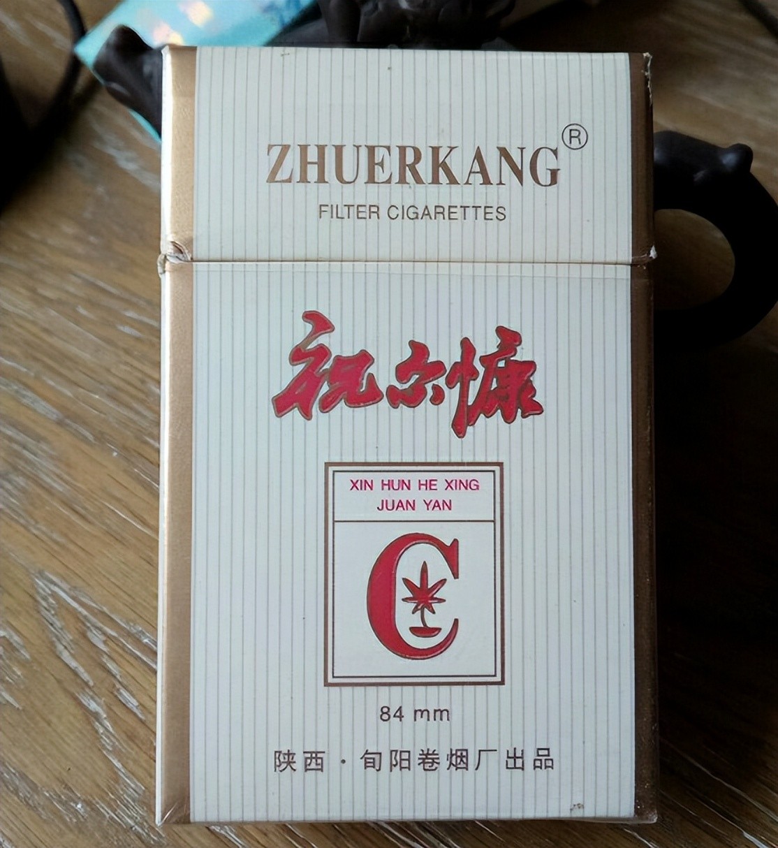1976年安康旬阳成立了旬阳卷烟厂,该厂推出过许多香烟产品,但是最出名的就是祝尔慷牌香烟,最早有绿色硬盒、红色硬盒、白色硬盒、金黄色硬盒等多种包装形式。其中,软祝尔慷香烟的包装主色调为金色,搭配红色作为副色调,显得简约大方。005年左右,祝尔慷香烟停产退市,被宝鸡烟草整合后更名猴王,但口感和品质已大不如前。