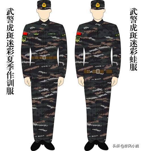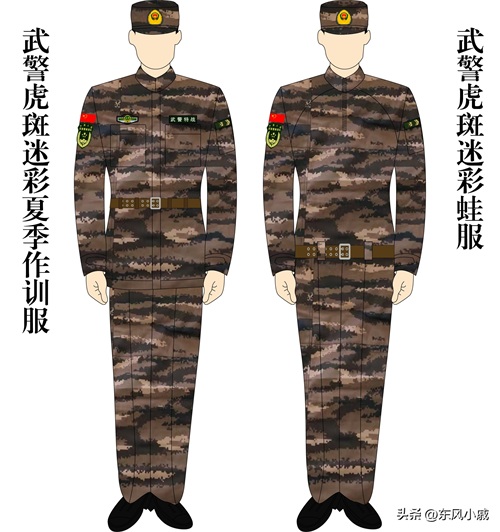 除此之外,武警部队还装备过横条纹的虎斑迷彩,同样也分为丛林和荒漠之分,主要装备给武警特战部队使用