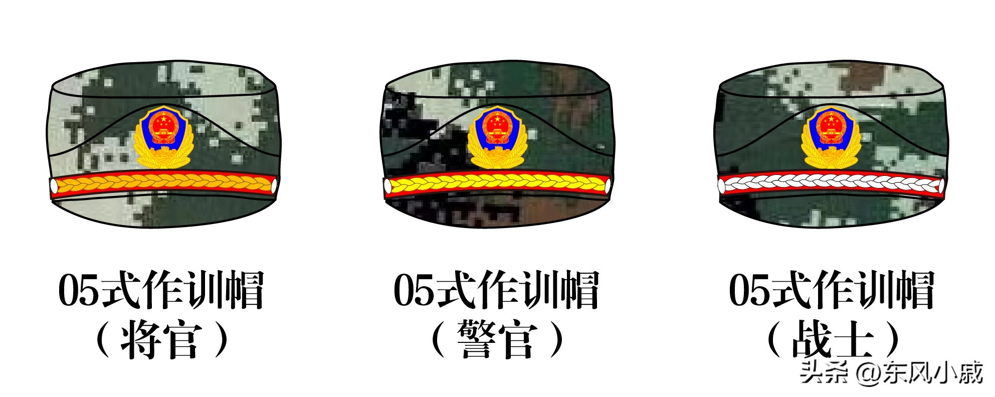 这张图就可以看出战士和警官的作训帽上面的区别,同样的帽带花纹装饰下的线条颜色不一