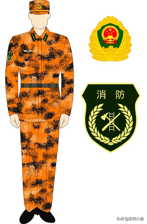 2008年,武警森林部队列装了一款橙色的迷彩服,全称为推出的07式橘红色数码迷彩防火服,其作用为了在森林火灾扑救中起到防护的作用,由于武警森林部队的任务性质,森林部队曾多次为部队设计专属的作训服以及其他专业服装,这也是其中之一