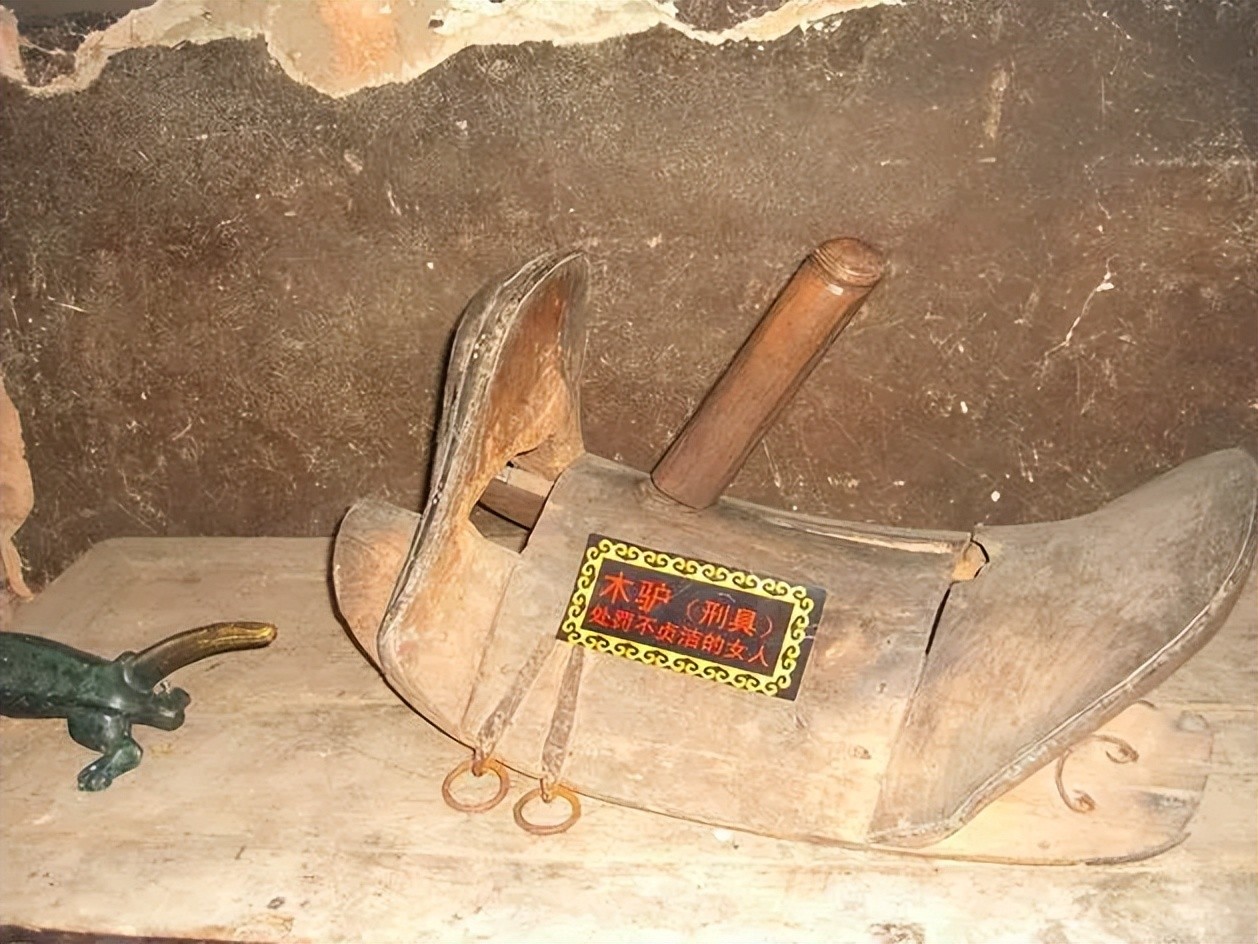 根据记载,女犯人骑木驴要双手反过来绑在后面,女犯人的脚要用铁链或者麻绳绑住在木驴底板两侧,说的绑住其实可能用铁链或者麻绳从身体里面穿过去。