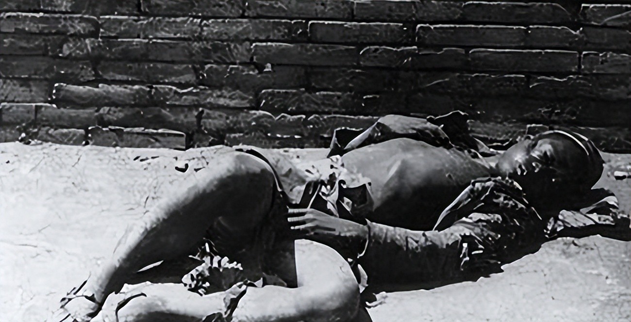 集中营中死去的妇女衣不遮体,一些活着的女人,骨瘦如柴,身体全裸。