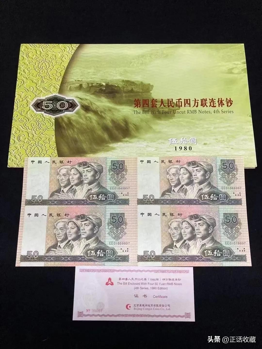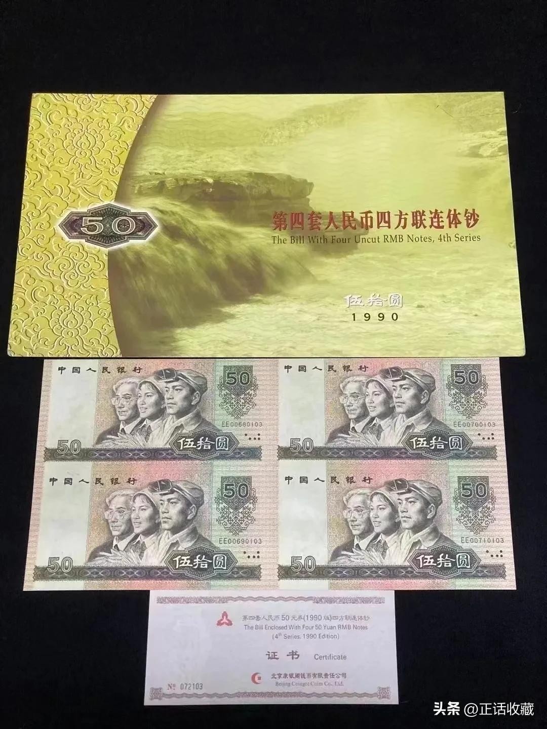 熟悉四版币行情的朋友都知道单张9050的价格曾经超过90100,但四连体的价格却一直低于90100,如今行情差,一千多就能收藏到全新好品四连体,也是以前不敢想的事情。